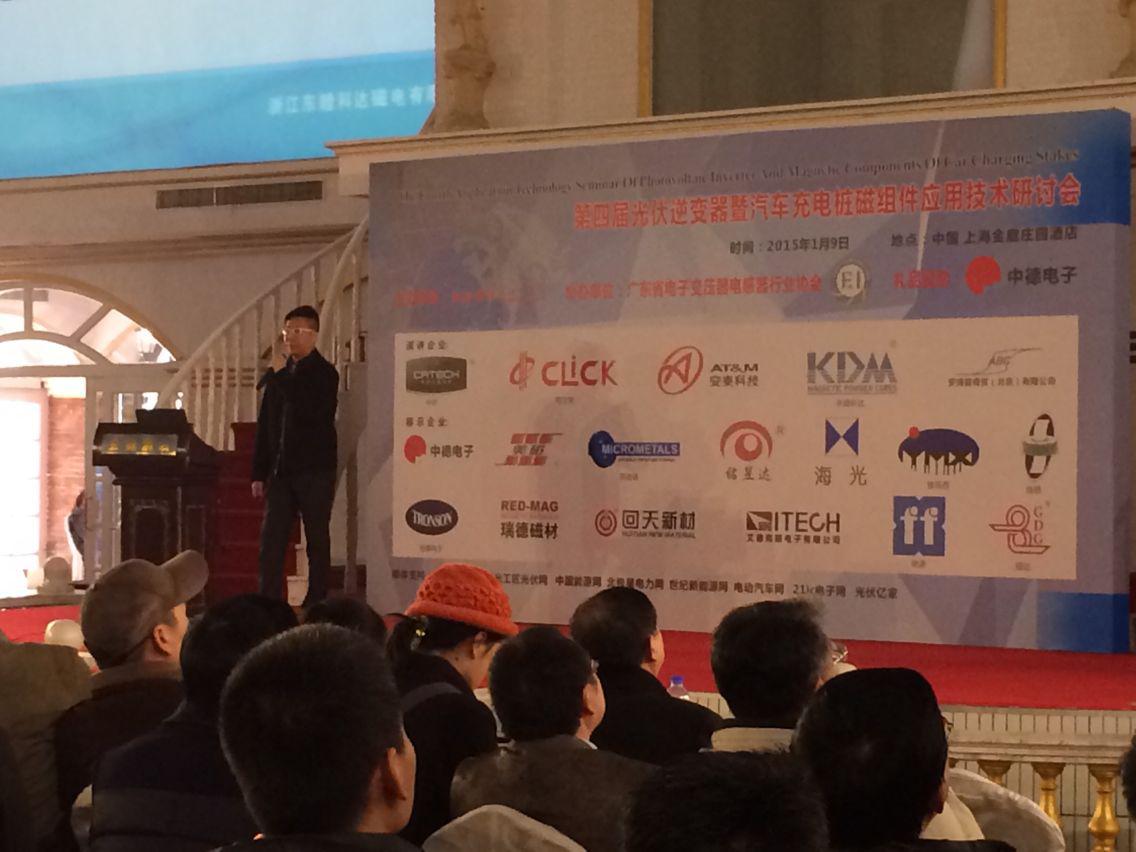 2015年1月9日,由我司香港辦技術銷售經理Alan帶領的團隊一行五人參加由大比特資訊公司在上海舉辦的第四屆光伏逆變器暨汽車充電樁磁組件應用技術研討會。會議主要圍繞“光伏逆變器、汽車充電樁熱點話題”進行技術上的交流。我司作為國內具有規(guī)模的軟磁金屬磁粉芯制造商,Alan代表整個公司向與會人員介紹了科達的新一代金屬磁粉芯及公司的新發(fā)展動態(tài),獲得了在場專家及工程師的一致認可及好評。整個會議其間,我司在指定區(qū)域進行了產品展示,讓更多人了解我們的產品,與我工作人員進行當面溝通與交流。